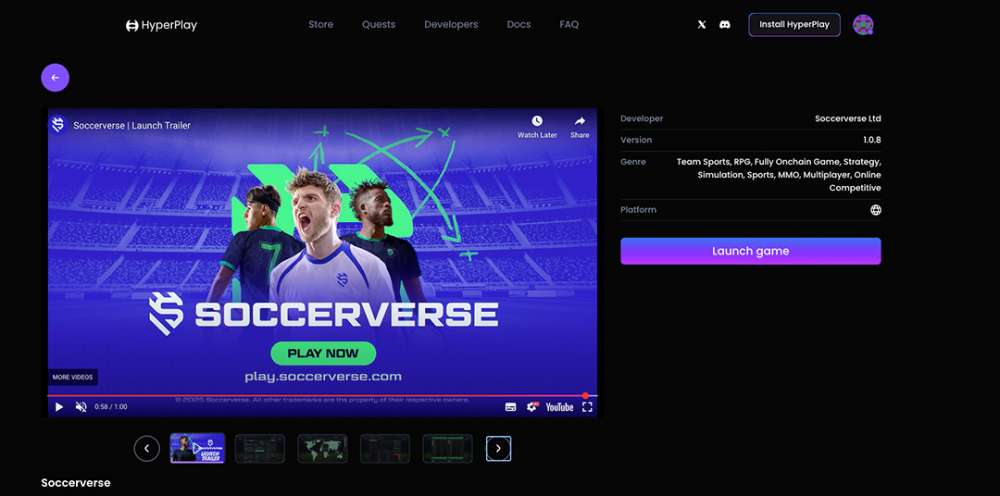 “Soccerverse is a fantastic addition to the HyperPlay ecosystem,” said Jacob, Founder & CEO at HyperPlay. “Their innovative approach to football management games and their strong community focus make them a perfect fit for our platform. We are thrilled to provide Soccerverse players with a simplified and enhanced gaming experience.”