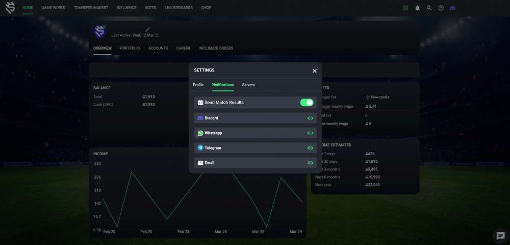 With our new notification system, you can receive important updates directly through your preferred channels. Whether you prefer the immediacy of Discord, the reliability of email, or the convenience of messaging apps like Telegram and WhatsApp, Soccerverse has you covered.